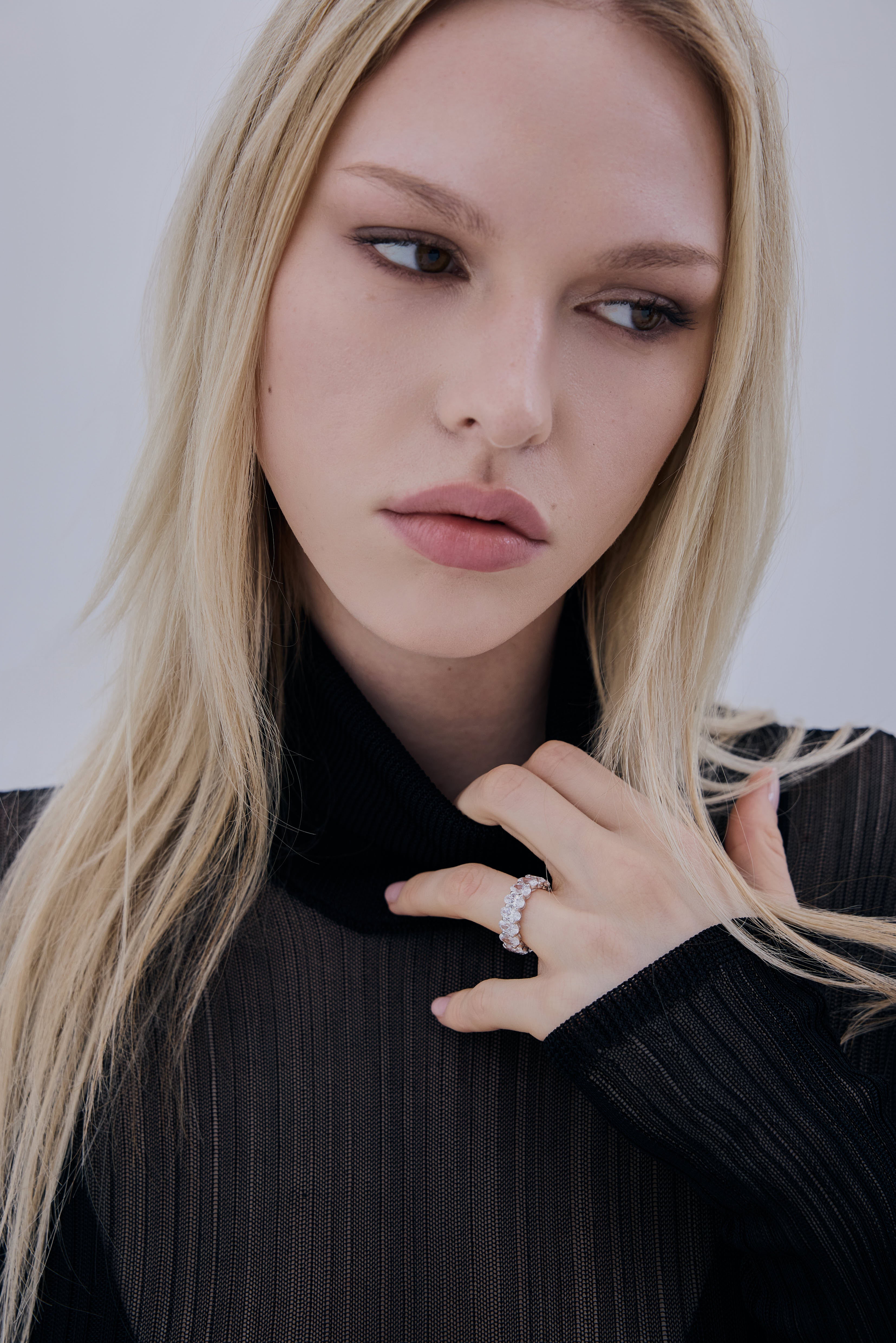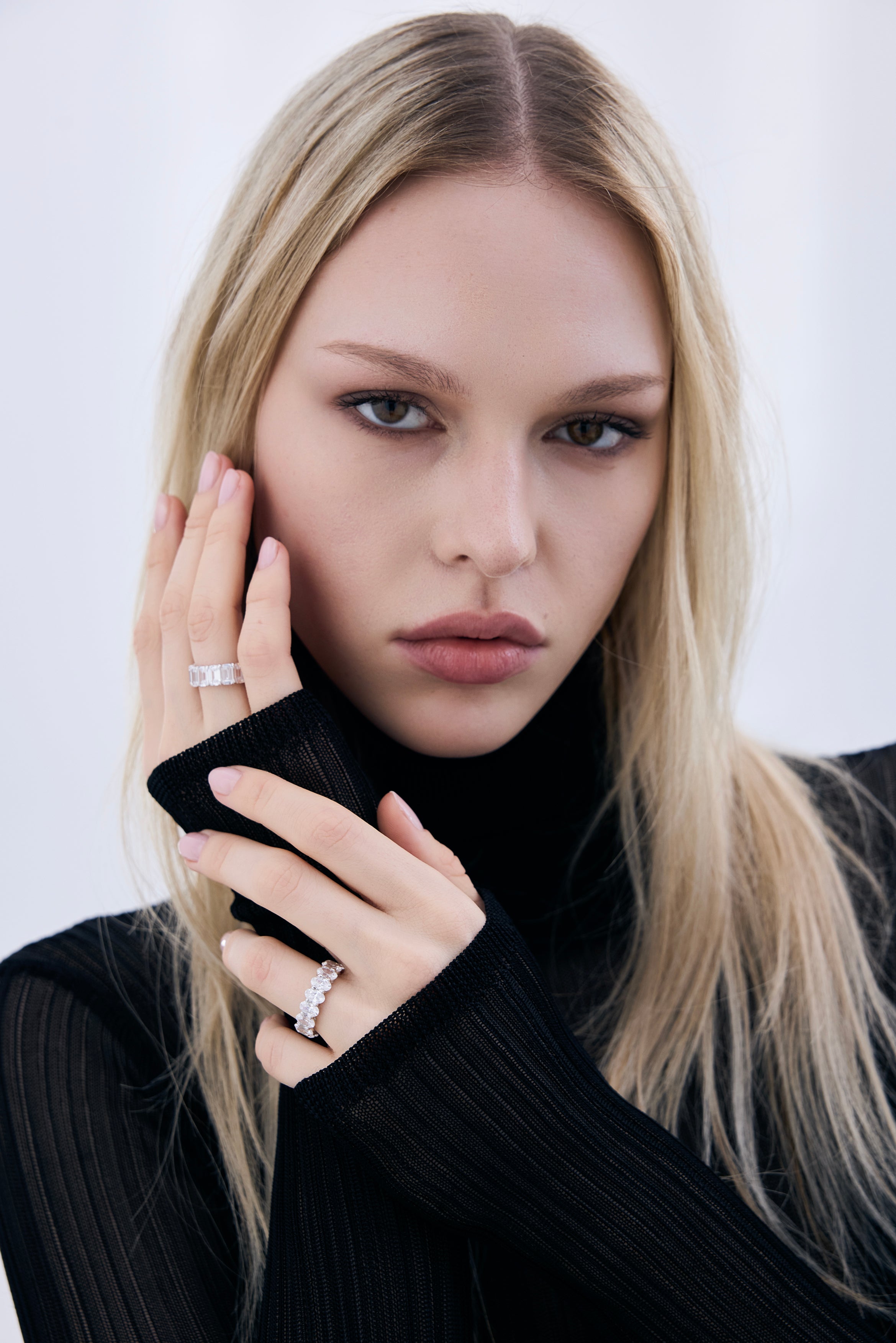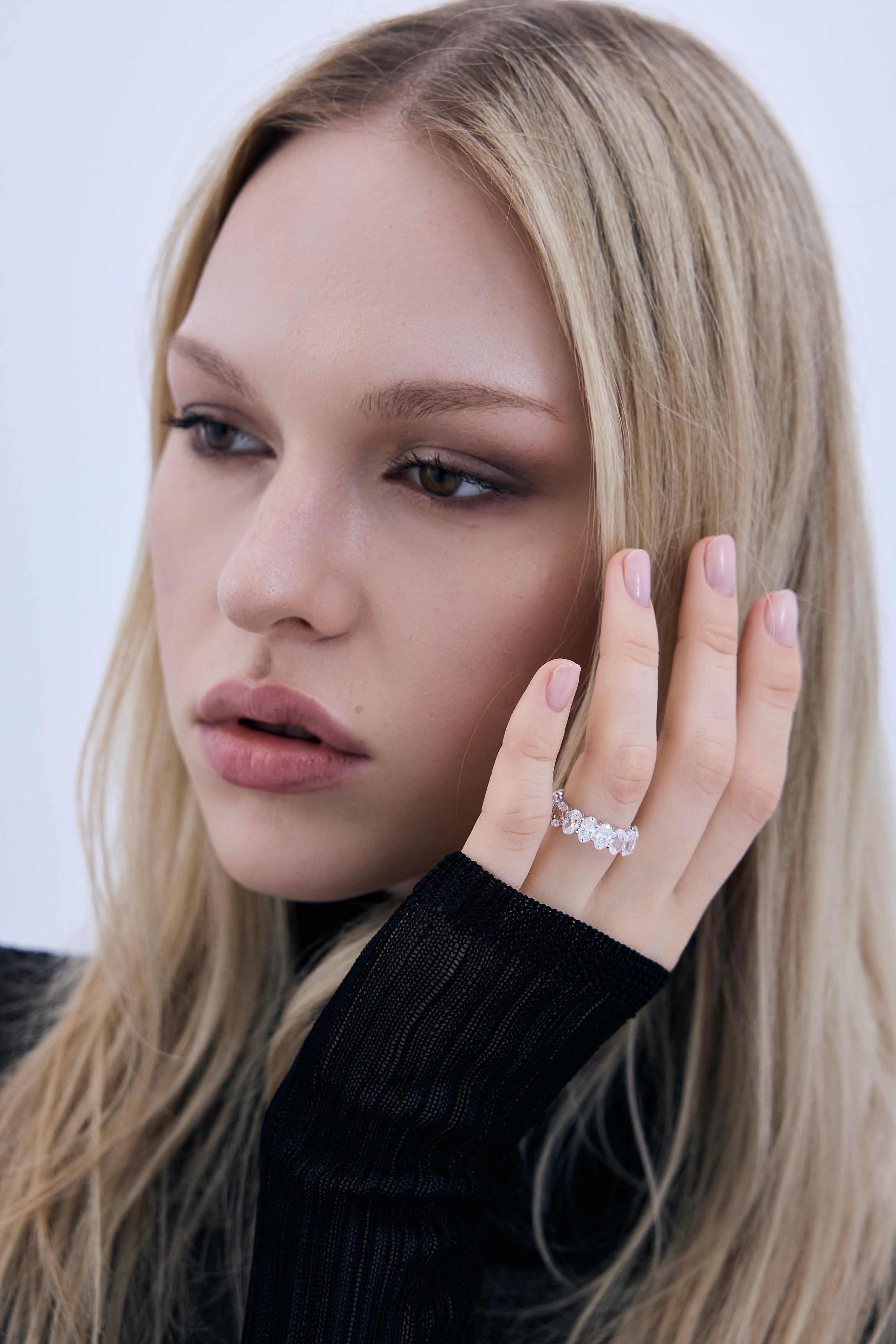 A continuous circle of luminous stones forms a seamless band of brilliance, symbolizing strength, devotion, and refined beauty.