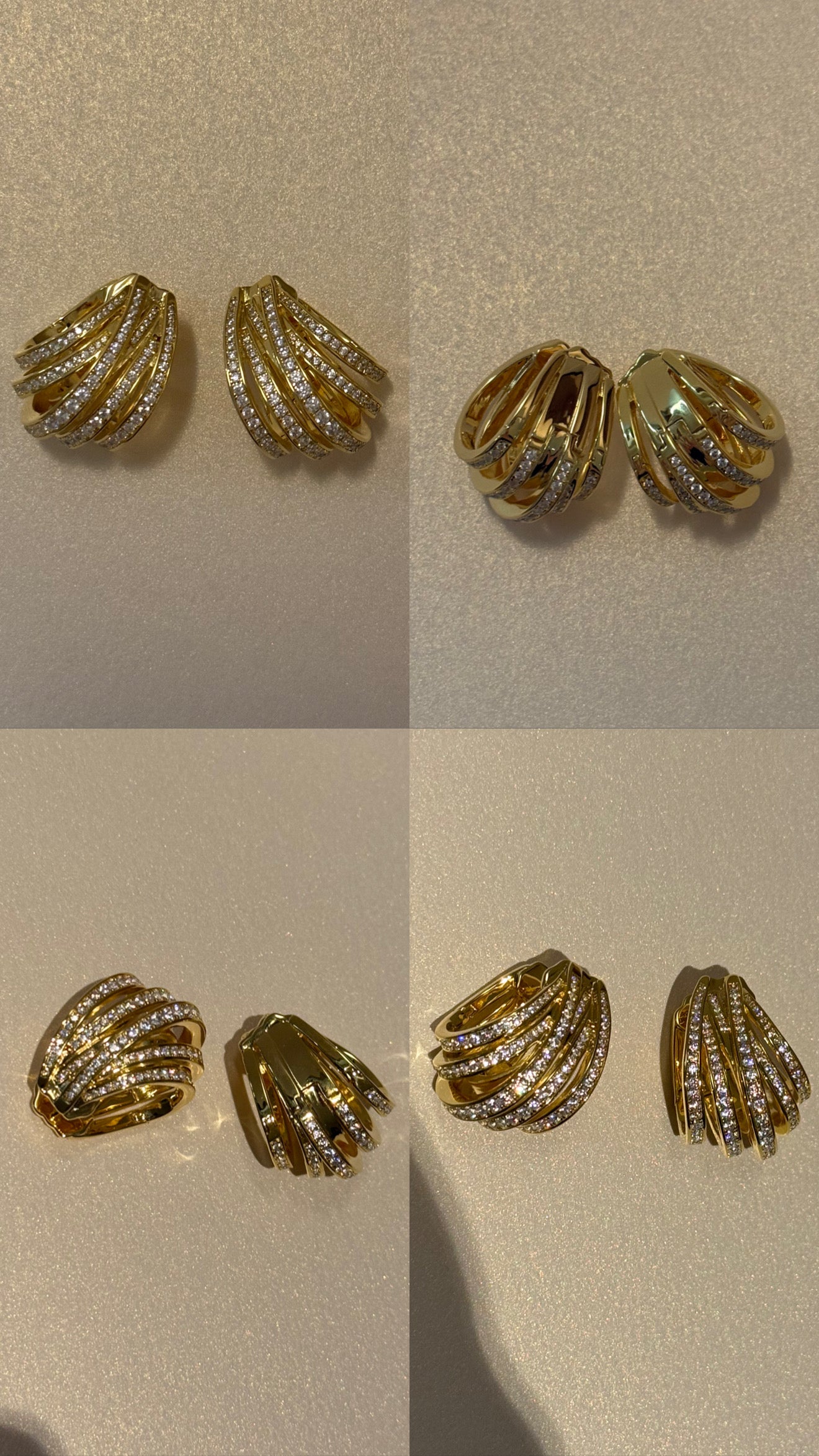 Elegant and effortlessly architectural, Aegina is inspired by the quiet strength of classical forms and the island breeze that shapes them. With a layered, fan-like silhouette and rows of shimmering stones, these earrings strike the perfect balance between movement and structure. Softly bold, they elevate even the most minimal ensemble.