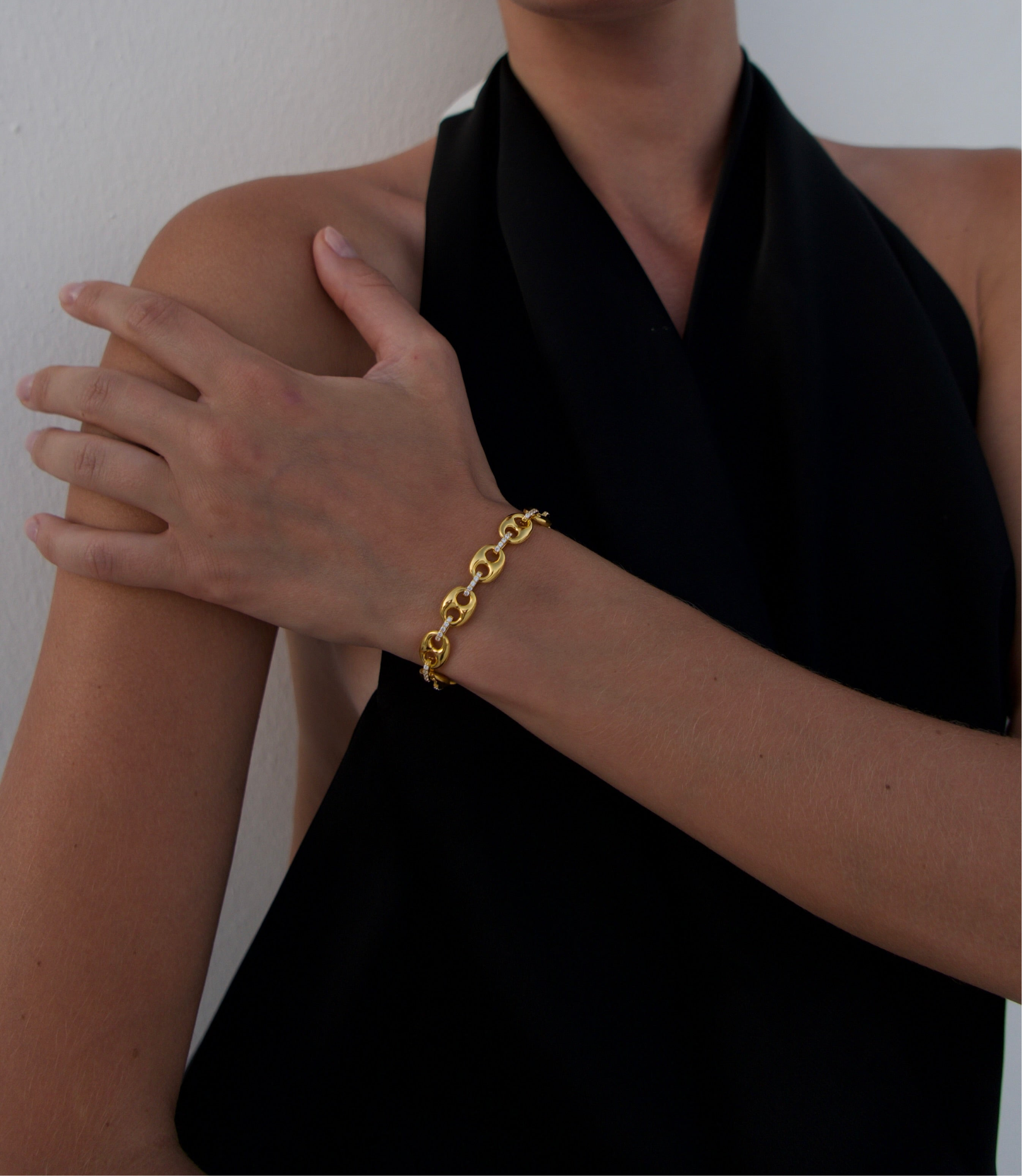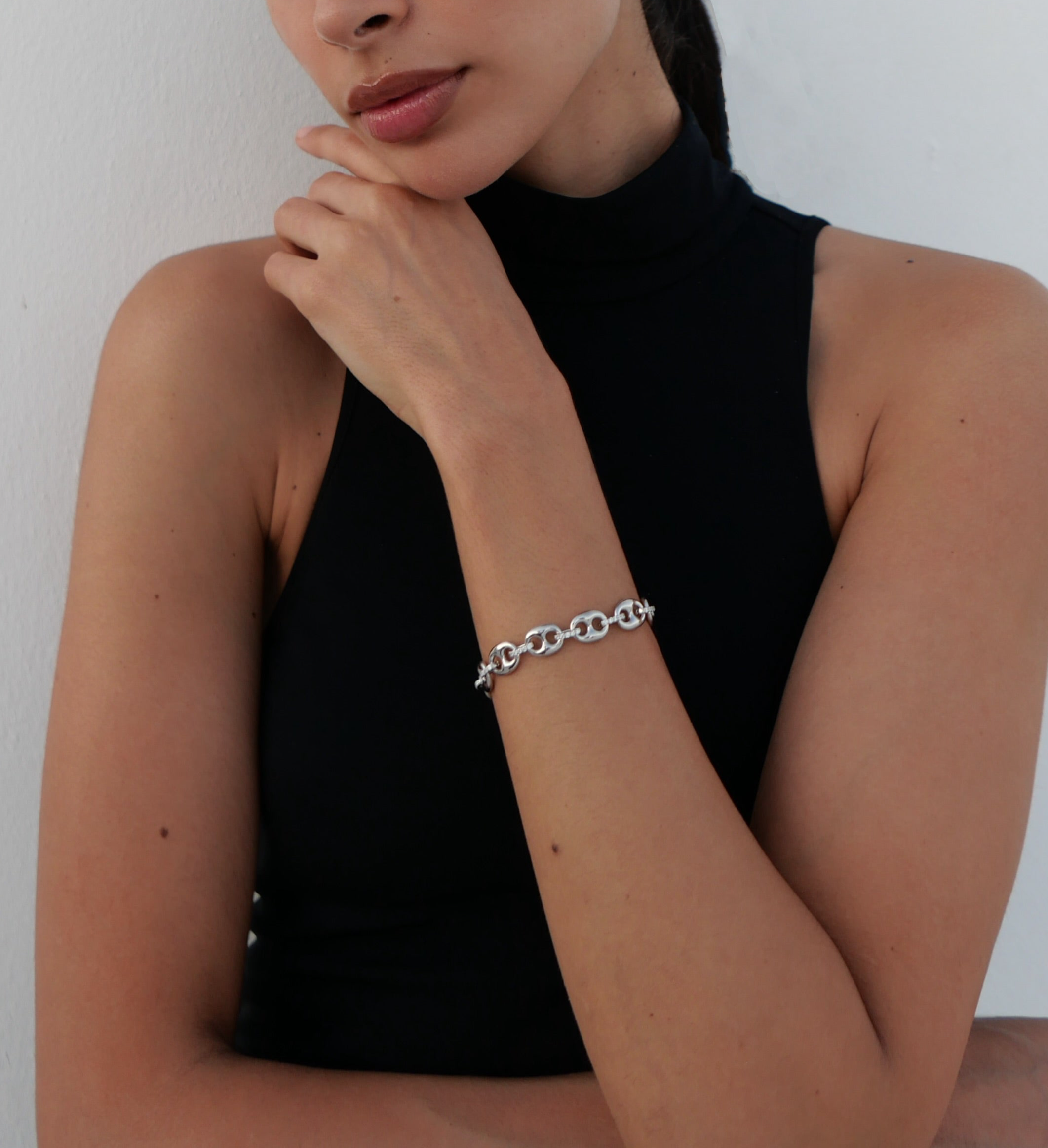 16cm Aurelia is a refined statement bracelet bold in form, timeless in elegance. With its sculptural links and vintage spirit, it elevates even the simplest look with a quiet confidence.