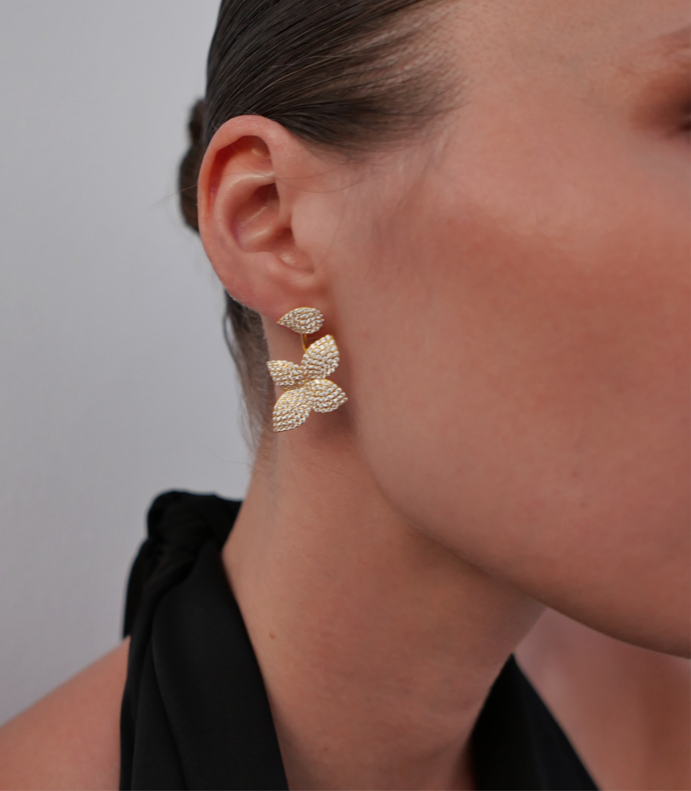 The Calla earrings are designed with intention a soft, sculptural shape inspired by nature, and a touch of everyday elegance. You can wear the top leaf on its own for a minimal, all-day look, or add the full flower detail when you want something more statement for the evening. With delicate zirconia and a lightweight feel, they’re as versatile as they are beautiful.