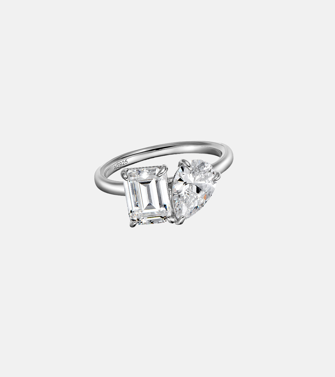 The Capri ring brings a fresh and modern twist to classic sparkle. With two different zirconia cuts an emerald and a pear set on an open band of 925 silver, it’s a piece that feels effortless and unique. Waterproof and finished with excellent-cut stones, it’s made to keep its shine wherever you go. Perfect on its own or stacked with slim bands for a more playful look.