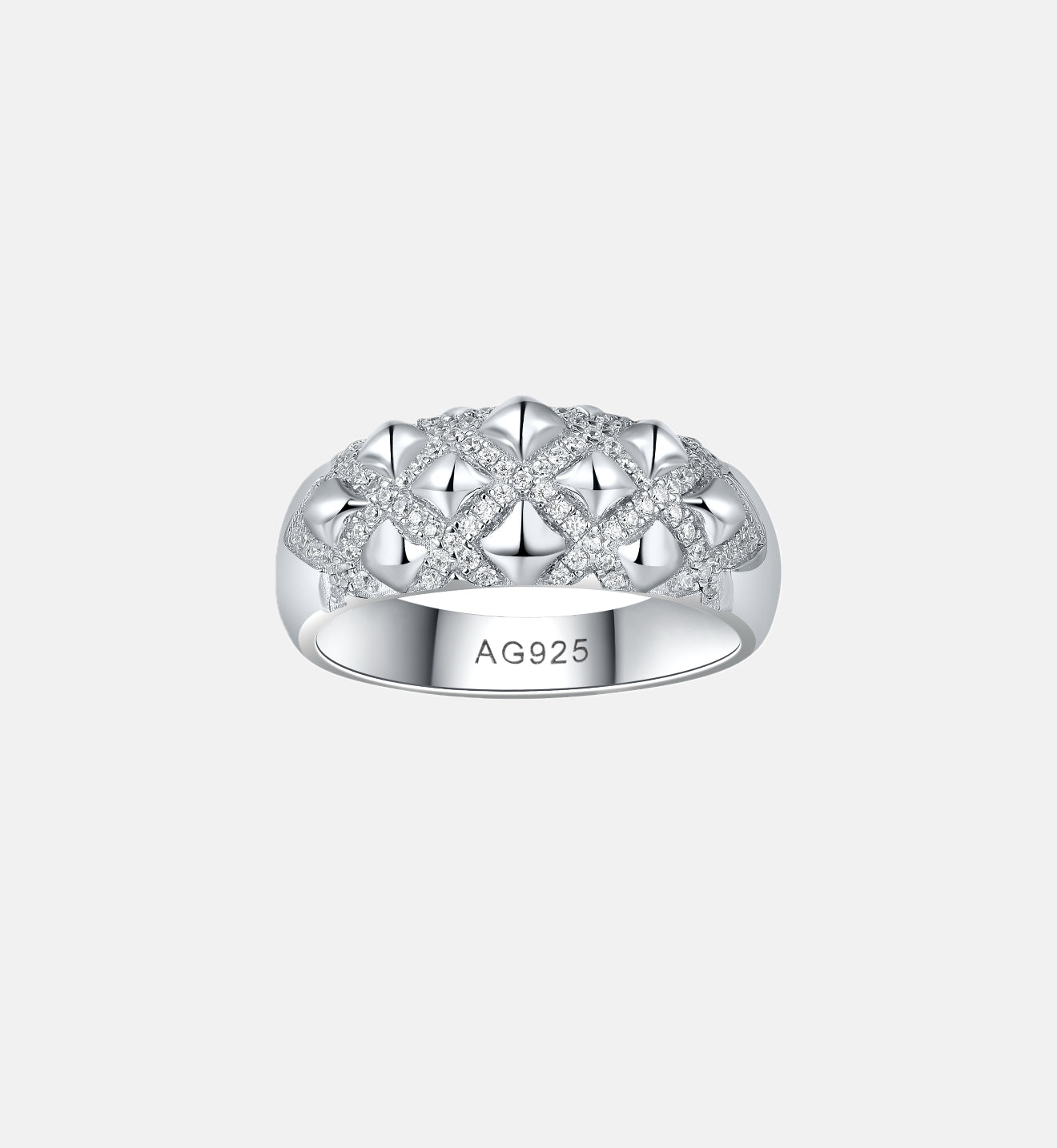 The Rock ring is all about texture and shine. Made from 925 silver and finished with excellent-cut zirconia, it has a unique, quilted-like design that feels modern but still elegant. It’s waterproof and easy to wear a statement ring that still works for everyday looks.